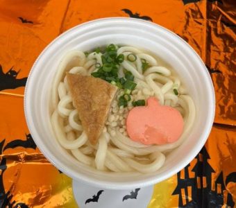 また、今年もおなじみ、ハロウィン仕様のかまぼこを入れたうどんを販売しました!