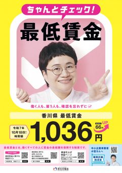令和7年10月18日から香川県の最低賃金が1036円になりました。