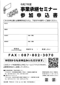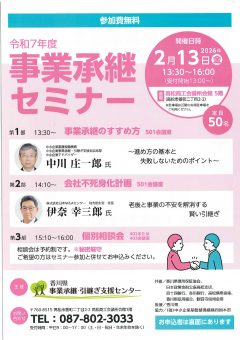 事業承継セミナーのご案内(香川県事業承継・引継ぎ支援センター)