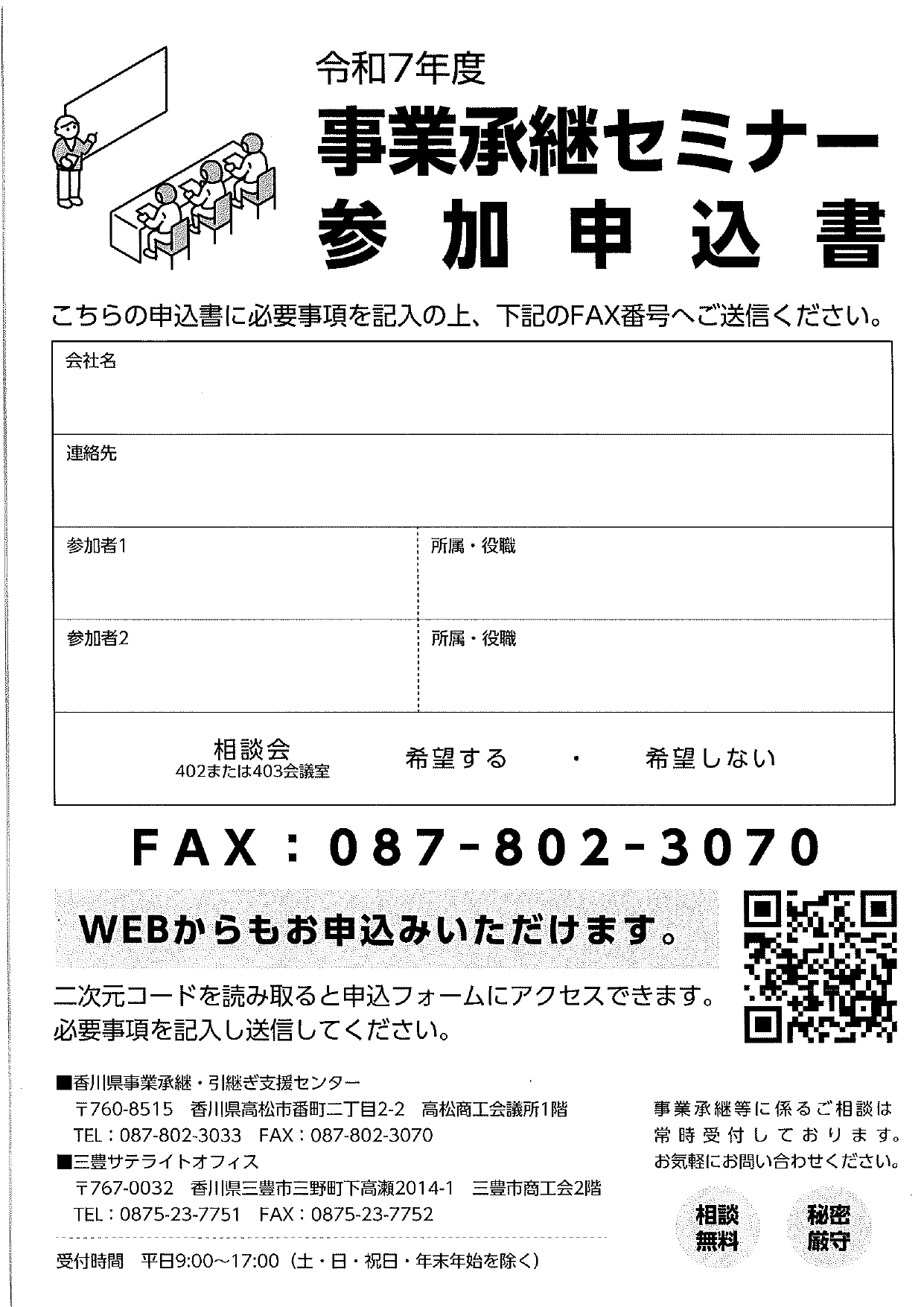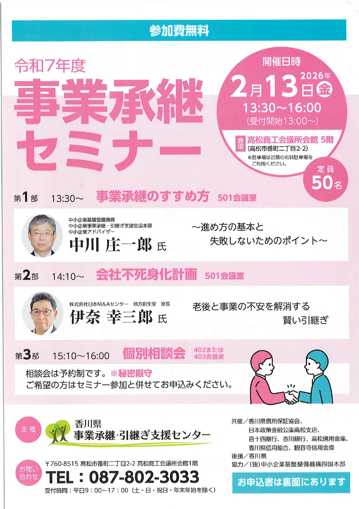 香川県事業承継・引継ぎ支援センター(TEL087-802-3033)